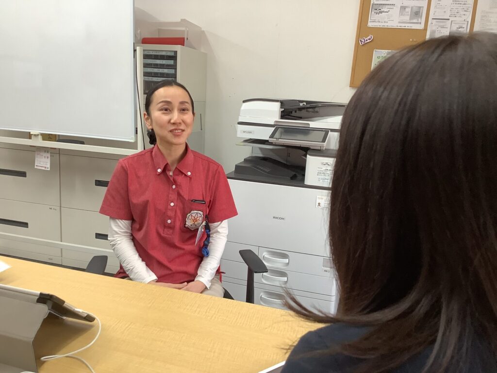 下村さんは、大学病院の救命センターで勤務したあと、ヨガインストラクターに転職し、約10年間その仕事に携わってきました。その後、前職の訪問看護とヨガを兼務する働き方を経て、楓の風に入職しています。